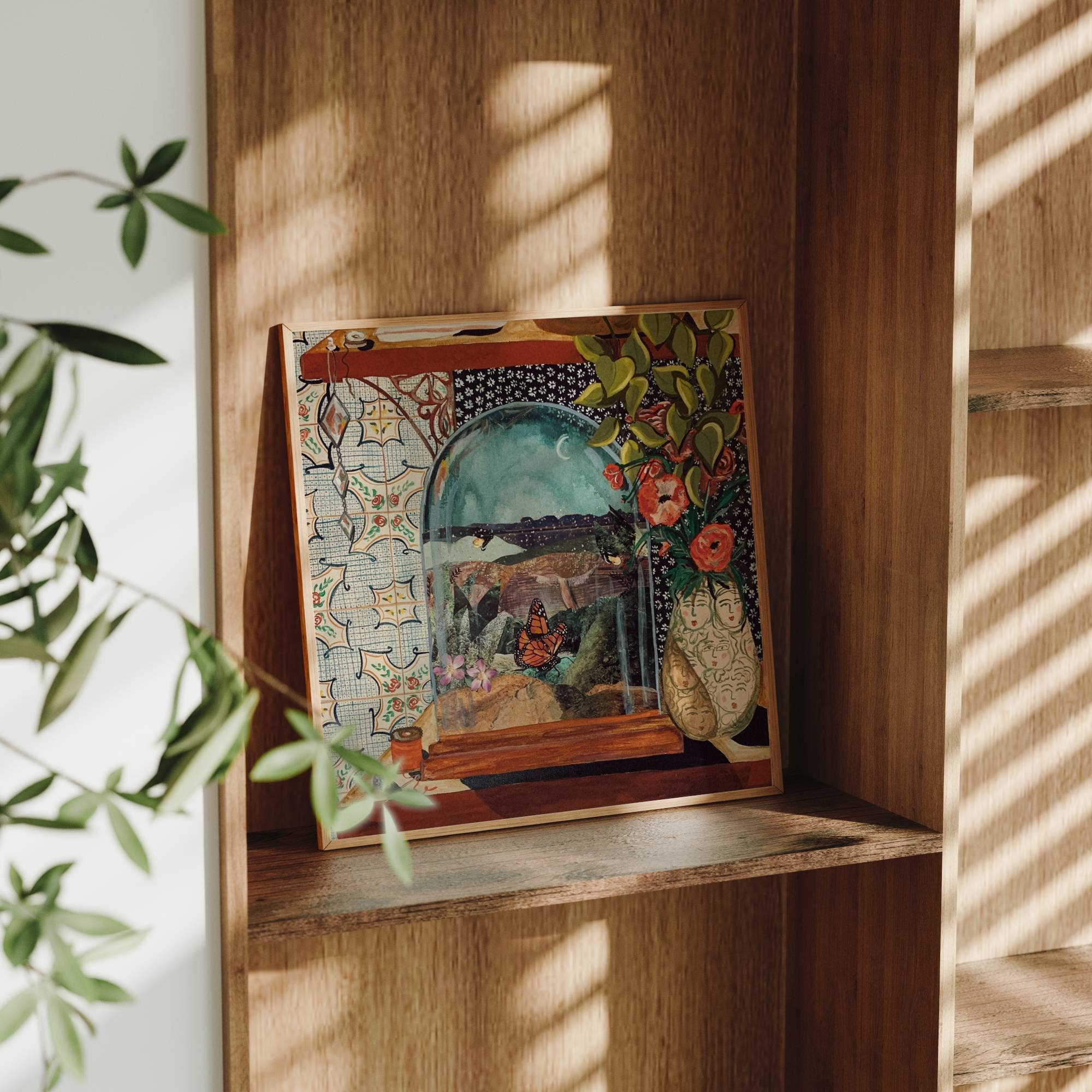 Whimsical still life art print, monarch butterfly in cloche. Inspired by the idea of embracing your small world.