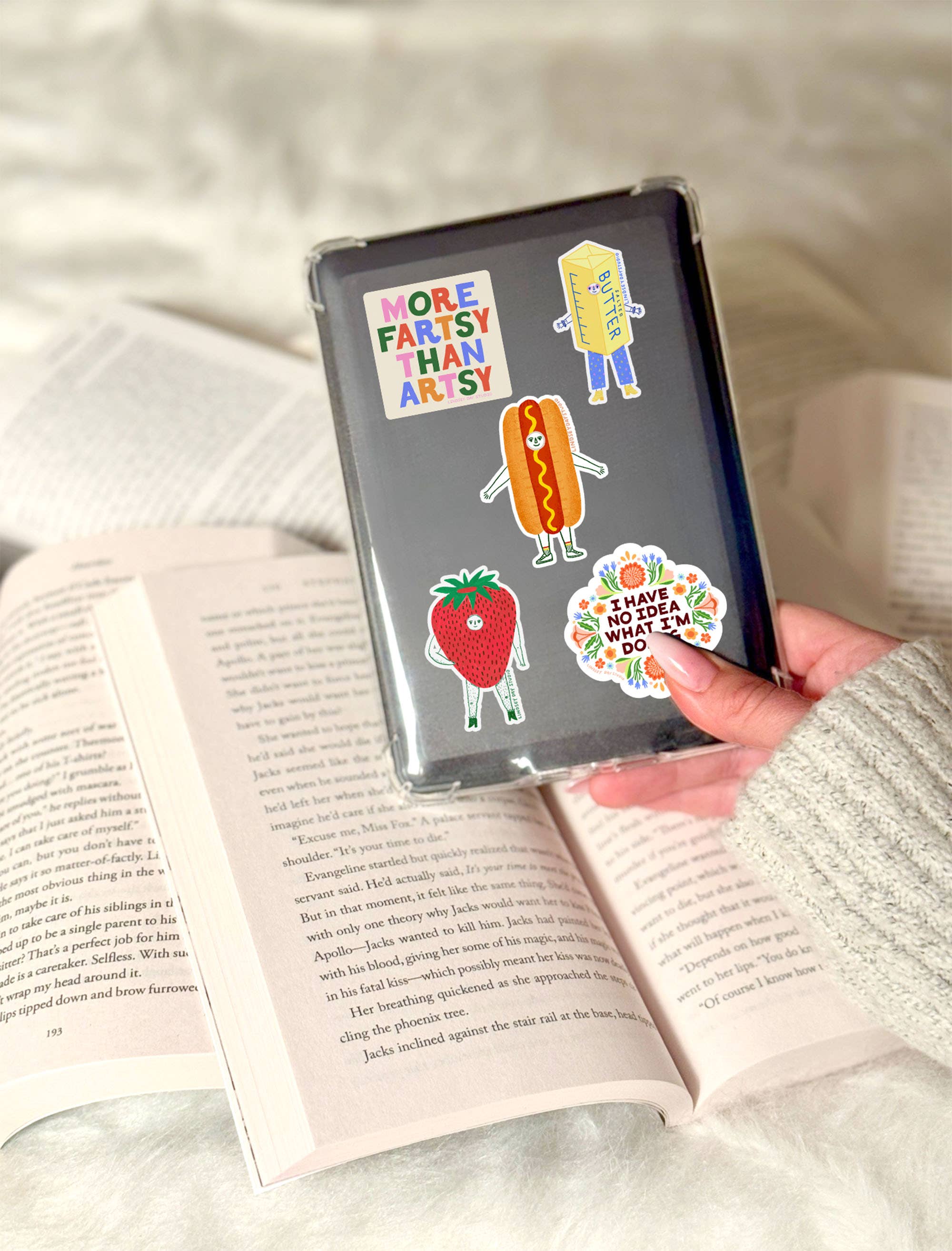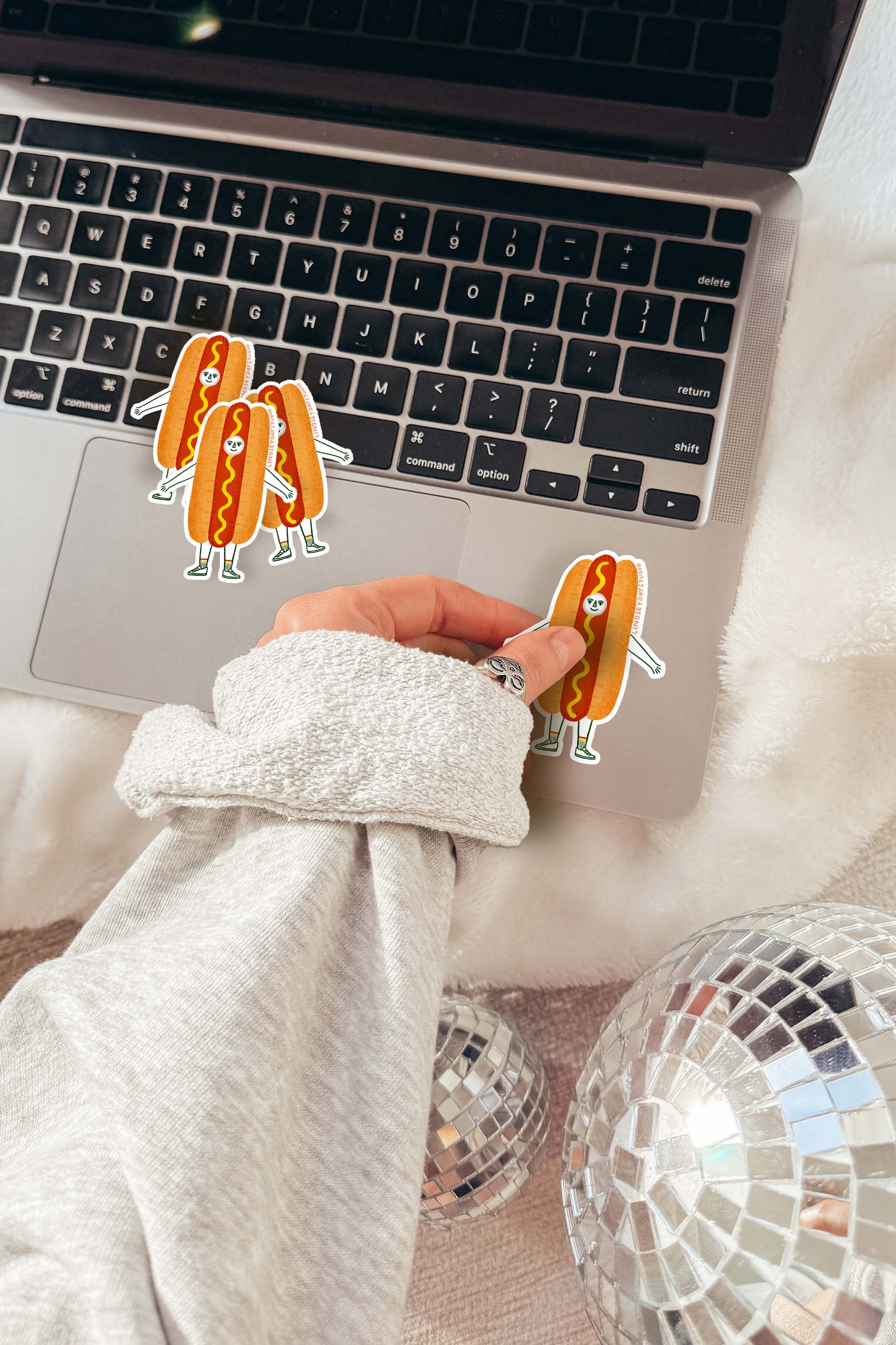 Meet Hannah the Hot Dog—she's saucy and dressed to impress! This is a waterproof, UV-resistant, and scratch-resistant vinyl sticker by Utah maker Lindsey Day Studio.