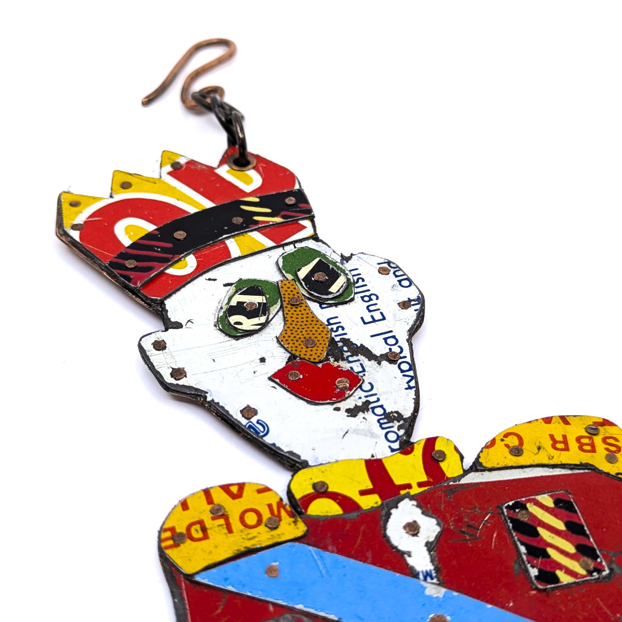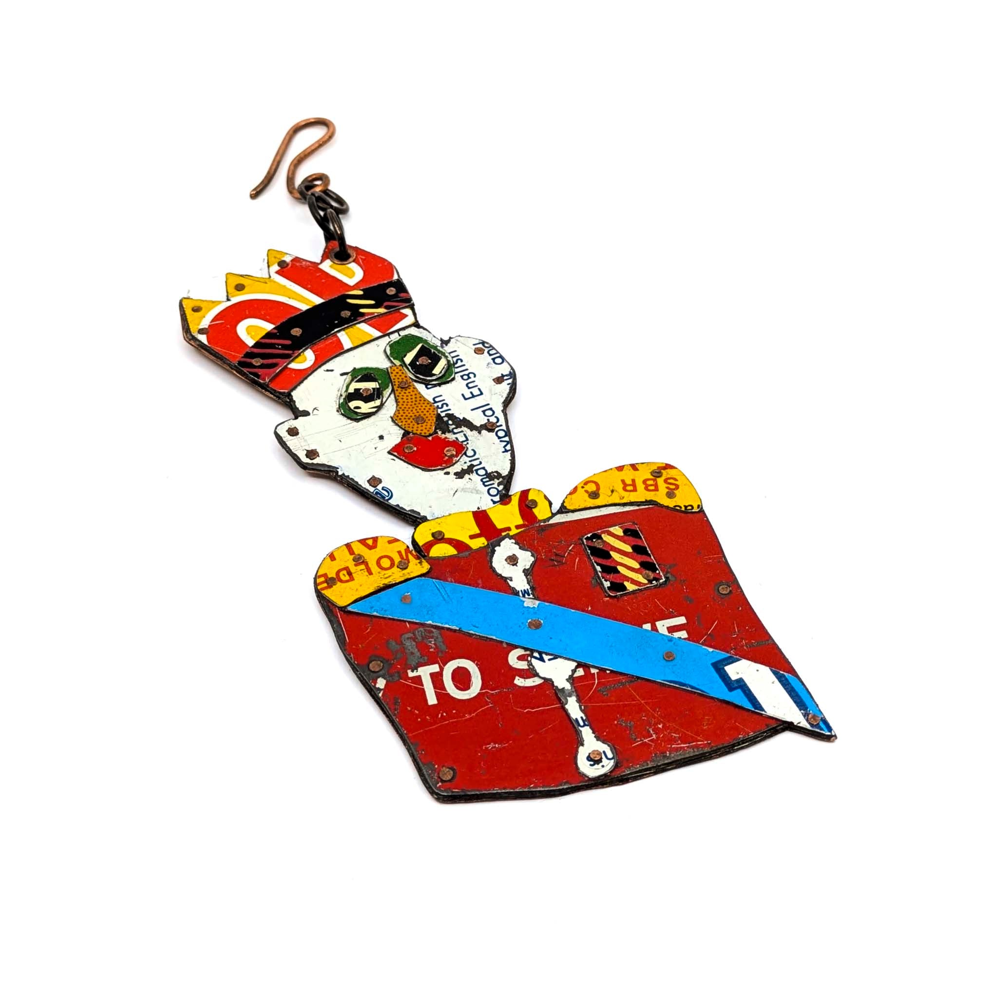 These ornaments are made by piecing together various metals and shapes from vintage tin! They have a similar feel as quilts and collages. Every ornament is one of a kind!