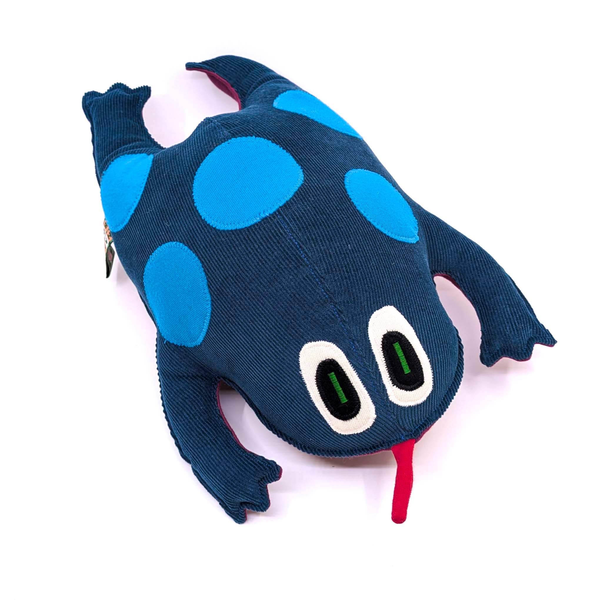 Spice up your living room couch or your bed with this handmade one-of-a-kind silly fabric frog by Haha BonBon.